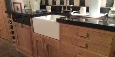 Oak wine units can be incorporated. Centre islands no problem, butchers tables can be made to order. No job to big or to small Dave loves a challenge.