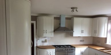 A beautiful kitchen, with rounded cupboard fronts, and painted to look so fresh, Dave is happy to help you design and plan your new kitchen.